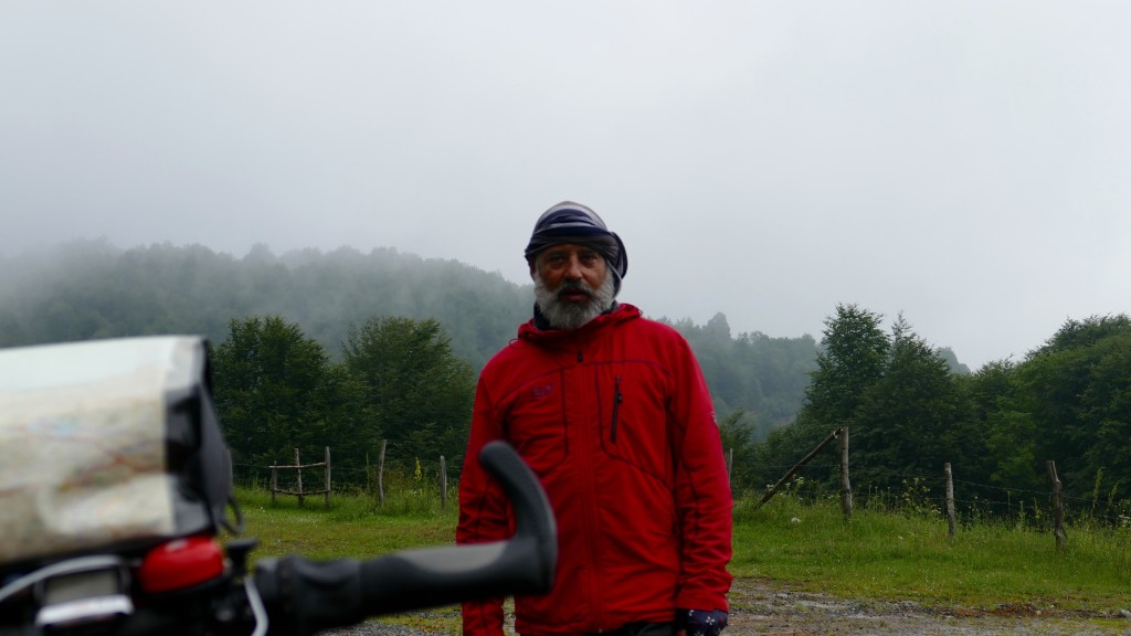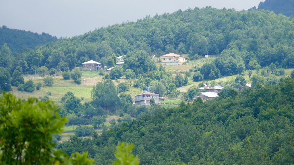 Dejé mi campamento en NIKSAR por la mañana rumbeando hacia el norte. En el horizonte veía como el viento empujaba nubes bajas por entre valles y estas caían como cortinas por sobre las laderas. Era un indicio de una entrada de aire frío desde el Mar Negro y hacia allá me dirigía. A pocos kms de mi partida, el termómetro empezaba a bajar llegando a la marca de 15 grados centígrados, y eso en verano en Turquía. Nunca lo hubiese imaginado. Una llovizna persistente y neblina me opacaban el paisaje. En algunos valles la visibilidad mejoraba y me permitia observar el paisaje, el cual me recordaba vivamente a la zona alpina del Tirol.