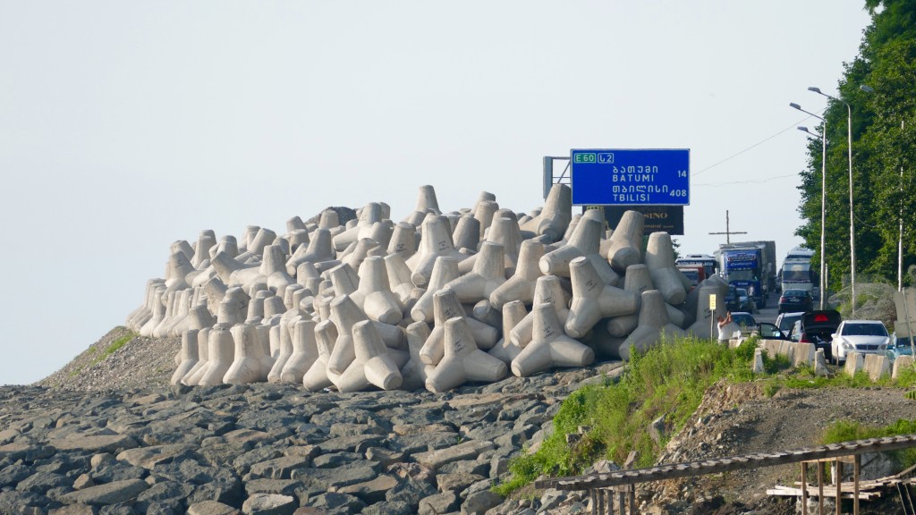 Los primeros 10 kms en Georgia me asustan. No por las caras no afeitadas o las apariencias de poco aseo de su gente. Es el estado de las rutas, que comparando con Turquía donde estas parecían autopistas, dejan mucho que desear. La agresividad en el trafico, el estado de los autos y la absoluta falta de consideración me obliga a parar todas mis antenas y viajar en estado de alarma por las próximas semanas.