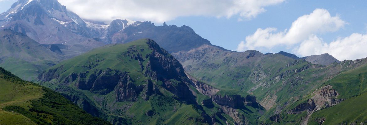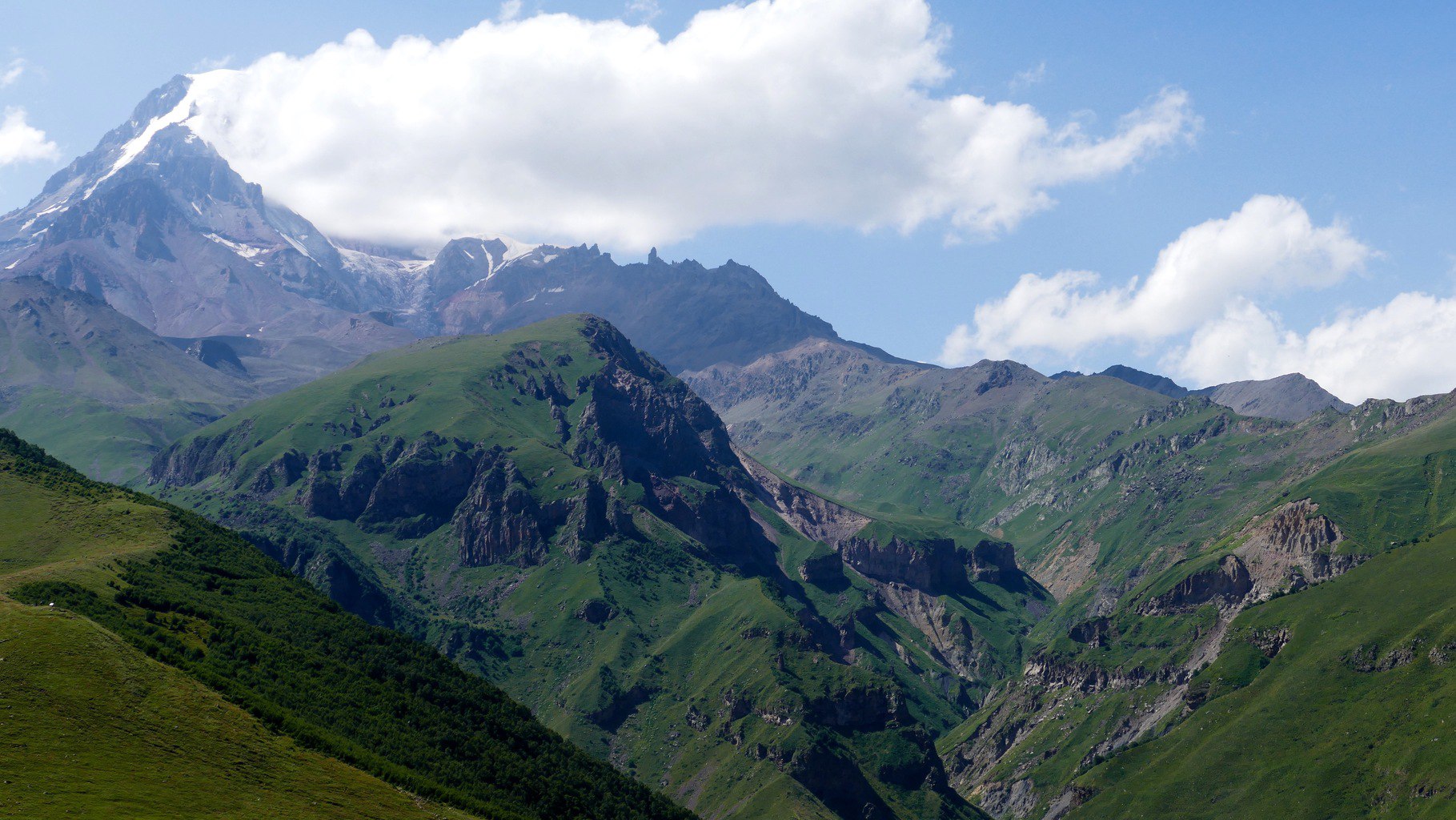 El monte Kazbek es un estratovolcán de 5.047 m altitud que se encuentra en Georgia, cerca de la frontera con la república de Osetia del Norte que forma parte de la Federación rusa. Es la cuarta cumbre de las montañas del Cáucaso, que tiene su cumbre más elevada en el monte Elbrus, y, es el segundo pico más alto en Georgia.