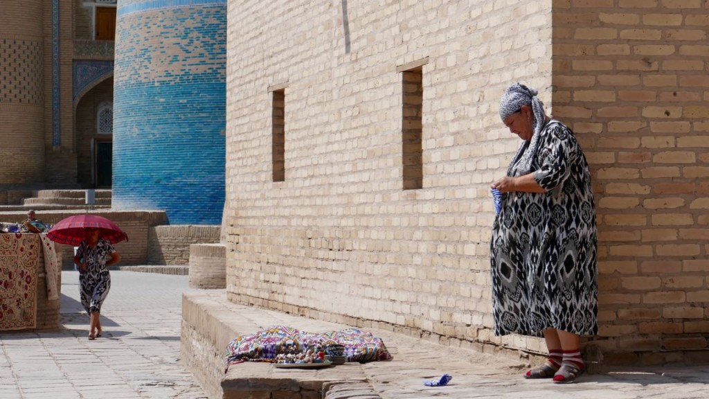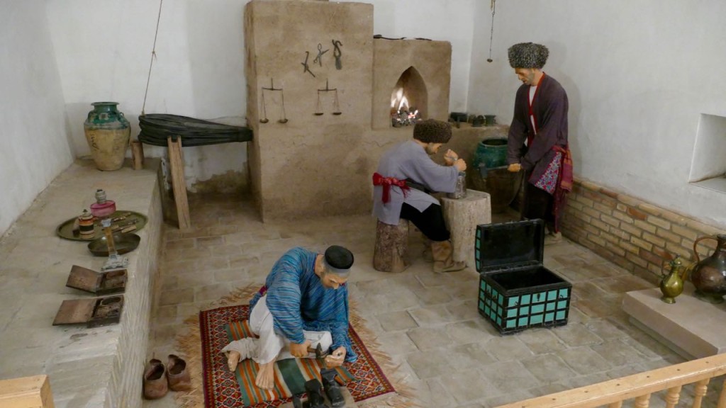 Itchan Kala was the site of the khan’s palace. High officials and clergy and rich merchants used to live here. This is why we find the most important buildings in the Itchan Kala.the woman at Itchan Kala.craftsmen in Khiva