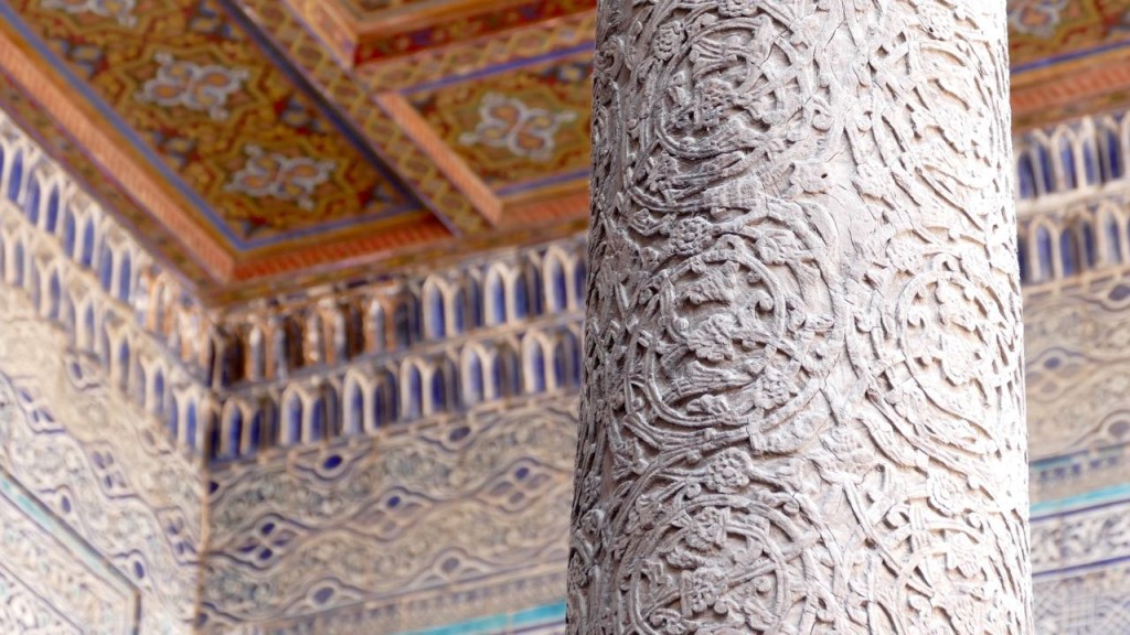 Necropolis in KhivaThe columns are masterpieces of wood carving.