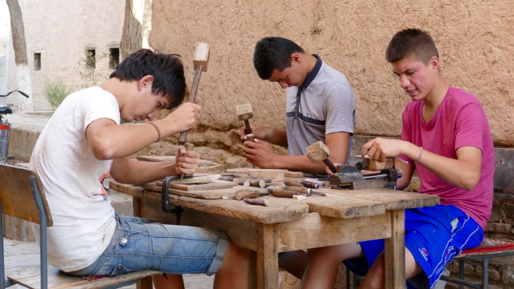 Khivan rulers commanded from this fortress-residence from as early as the 12th century up to the 17th century when the khans expanded the structure to include a mosque, a harem, and a jail.Silky bags in colourful KhivaThe stuntman in KhivaThe musicians.Itchan Kala / KhivaThe stuntman in KhivaHandicrafts. The wood carvers of KhivaHandicrafts. The wood carvers of KhivaKhiva almost has a two-season climate; with slivers of spring and fall in between frigid winters and blazing hot summers. It starts to get uncomfortably cold in Khiva by November, with temperatures hovering between -10°C and 5°C. The chill usually lasts well into mid-March; just in time for the Navruz holiday. Spring usually lasts around a month and a half and is usually one of the best times to visit. Summer arrives quickly, however, with temperatures reaching as high as 45°C by August. Luckily, it’s a dry heat (rainfall and humidity are practically negligible) so walking around the city isn’t too much of a burden.City walls. The surrounding walls are 6 to 8 m high and 6 m thick at their base. A great part of the city walls has been destroyed, but a part 2,2 km long has been preserved. As in other cities in Central Asia the city walls were built of sun-dried bricks. The city walls were destroyed several times, but they were always rebuilt. According to the archaeologists the oldest parts of the city wall date from the 5th to 6th cent.AD0