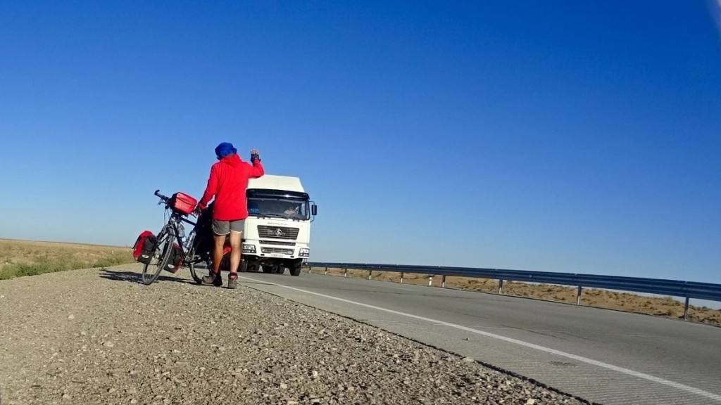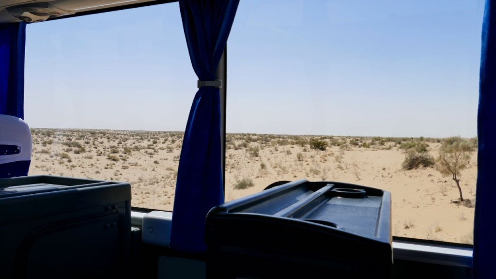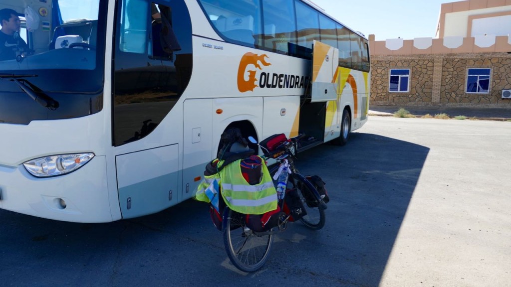 En este día, probando de cruzar el desierto de Kyzyl-Kum, abandoné la empresa y abatido por el viento en contra, me encontré haciendo “dedo” a cuan camión me levantara. Como siempre y teniendo fe a mi carma, me cogió un micro de excursionistas americanas, llevándome a la ciudad de Bukhara, incluido el almuerzo y la cena.