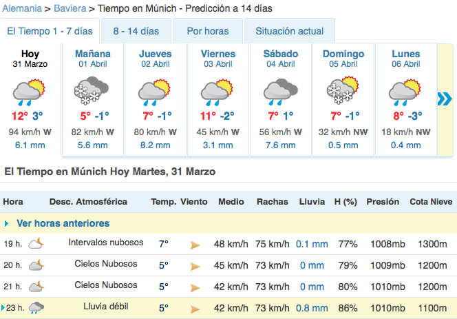 El tiempo (meteorologico) me esta metiendo a la prueba. Un huracán sigue al que le precede, desde el norte de Alemania hasta la zona Alpina en el Sur.