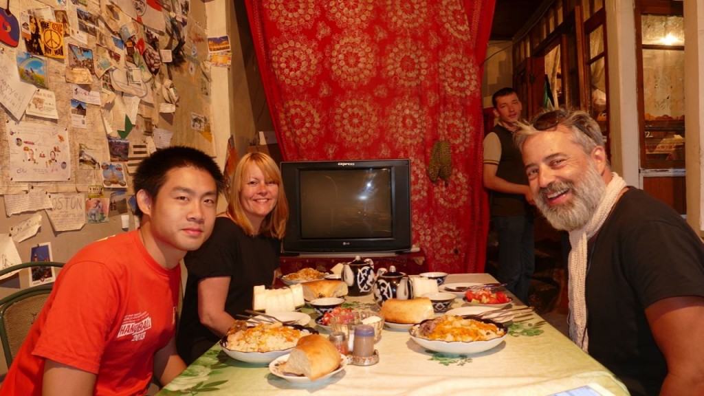 Takin & Helen, having dinner at Bohudir Hostel Samarkand,