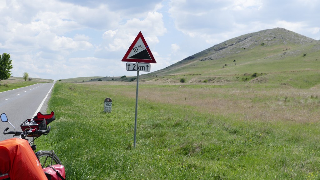 Es wieder ganze 100 Km bis zum Ziel sind. Dass ein ganzer Gebirgszug zu passieren ist. Den „Parcul National Montii Macinei„. Was ich jedoch noch nicht wissen konnte war dass ich in der Stadt Macin meinen 4. Platten haben würde und dass ich die letzten Steigungen an diesem langen Tag gegen einen starken Gegenwind kämpfen müsste.