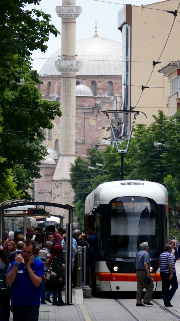 Urban development in AnatoliaDie Region die ich vor Eskisehir geradelt bin, ist eine Hügellandschaft, über 800 MSL, geziert von Weidelandschaften, Ackerbau und nahe an der Hauptstrasse mit unzähligen kleinen und mittelständischen Betriebe. Textilindustrie, Marmor und Steinhauereien, Nanotechnologie und andere. Eskisehir selber ist ein industrieller Standort bekannt fuer Flugzeugbau, Lokomotive und Zugbau. Die urbane Entwicklung ist beachtlich und wo man hinschaut sind Baustellen welche der Infrastruktur Verbesserung dienen. Hochgeschwindigkeitszüge bzw. der Ausbau deren Trassen, nagelneue Strassenbahnen und beachtliche Routen. Da die Stadt selber eine starke demographische Expansion in den letzten Jahren erlebte, haben die Politiker eine intelligente Lösung gefunden um die drohende Verzehrlawine Herr zu werden. Sie bauten nicht mehr Strassen sonder verbannen einfach den Verkehr aus der Stadt und gewannen somit in der ganzen Stadt Fussgängerzonen und Lebensqualität, das ganze unterstützt durch ein effektives öffentliches Verkehrsnetz.