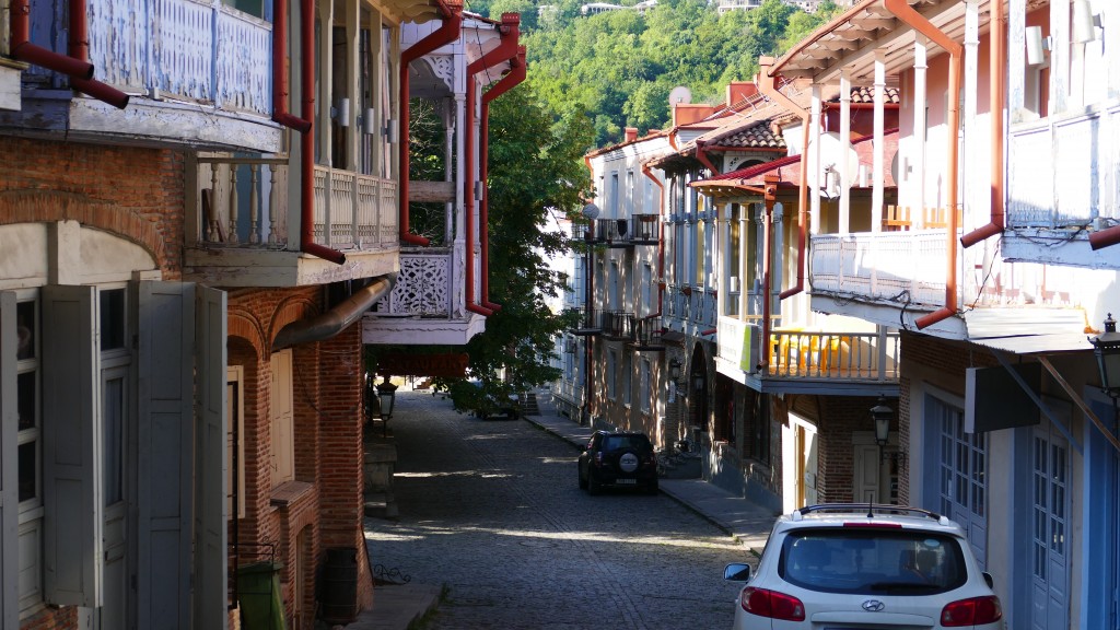 behind me on top of a mount, Sighnaghi. In front the valley. The path ends here. Don’t believe your GPS