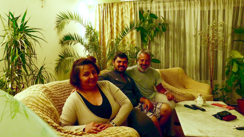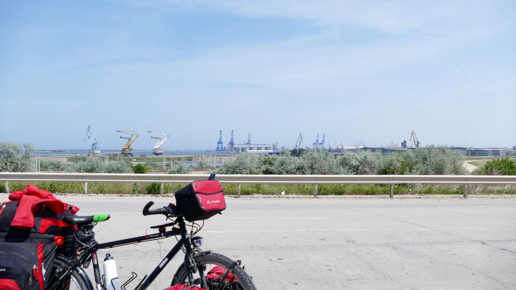 Die Trägheit ist meine Begleiterin. So fällt mir das Anhalten oder Starten gleichermassen schwer. Heute in Constanta war wieder so ein Tag. Das Mittagsläuten war bereits eine Stunde Alt und ich verliess die Hafenstadt gen Westen. Wie weit ich kommen würde war mir zu diesem Zeitpunkt noch gar nicht bekannt. Ich schlenderte dem GPS nach durch den grossen Hafen von Constanta, über den Donau-Kanal auf die Bundestrasse Richtung Bulgarien. Die Grenze war zwar in einer machbaren Reichweite doch ich dachte gar nicht danach dieses durchzuziehen. So kam es auch, dass ich eigentlich nach nur ca. 30 Km, und sobald ich nur wenige Meter von Strand entfernt war, mich nach eine Unterkunft umzuschauen begann. Ich sehnte mich einfach danach, die Dämmerung alleine am Strand sitzend, zu erleben. Die Musik der Brandung und das Parfüm nach Jod und Salz, oh wie lange war das schon her! Nach Dunkelheits-einbruch kehrte ich in die Casa Silvia zurück, wo wir in familiärer Atmosphäre bis Mitternacht plauderten, über dies und jenes. Silvia, die Mutter, servierte mir ein wunderbares Stück Torte, während Vasile, der Vater mir ein Ursus Bier einschenkt. Er ging allerdings früher zu Bett, da er als Fernfahrer mit Sonnenaufgang ausser Haus muss. Erzvan, der Sohn schwärmte von Argentinien, und da Erdkunde immer sein Lieblingsfach gewesen sei, kannte er Städte und Sehenswürdigkeiten nahezu so gut wie ich. Ich wünsche Ihm alles gute wenn er demnächst in Luxemburg die neue Stelle als Brummifahrer eintritt.