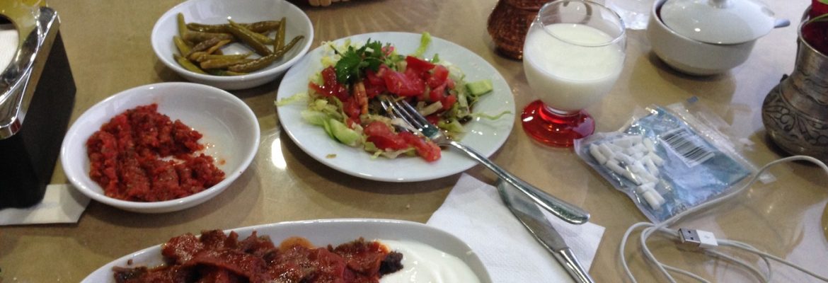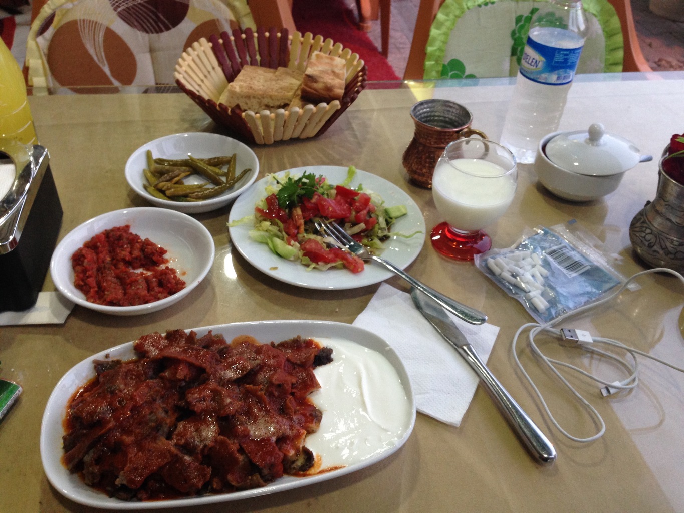 Bebida: La bebida que acompaña todo pasto es el agua, mineral o de manantial o el Ayran (mezcla de yogurt, agua y sal). Bebidas alcoholicas no se sirven, salvo tal vez en restaurantes de alta categoria a los cuales no he tenido acceso en estas 6 semanas que llevo viajando. Todo se cierra con un te negro o un caffe turco.