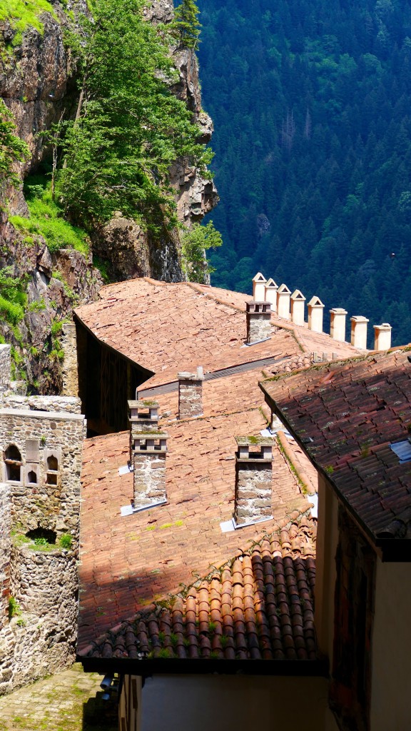 The large building with a balcony on the front part of the cliff was used for the monks’ cells and for housing guests. It dates from 1840.El monasterio de Sumela (en turco: Sümela Manastırı; griego: Μονή Παναγίας Σουμελά, es decir el monasterio de la Panagia («Toda Santa», el nombre griego de la Virgen María) en el monte Melá) es un monasterio griego ortodoxo, a los pies de un acantilado, a 1200 MSL frente al valle de Altındere.
