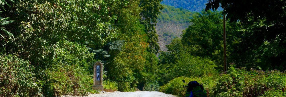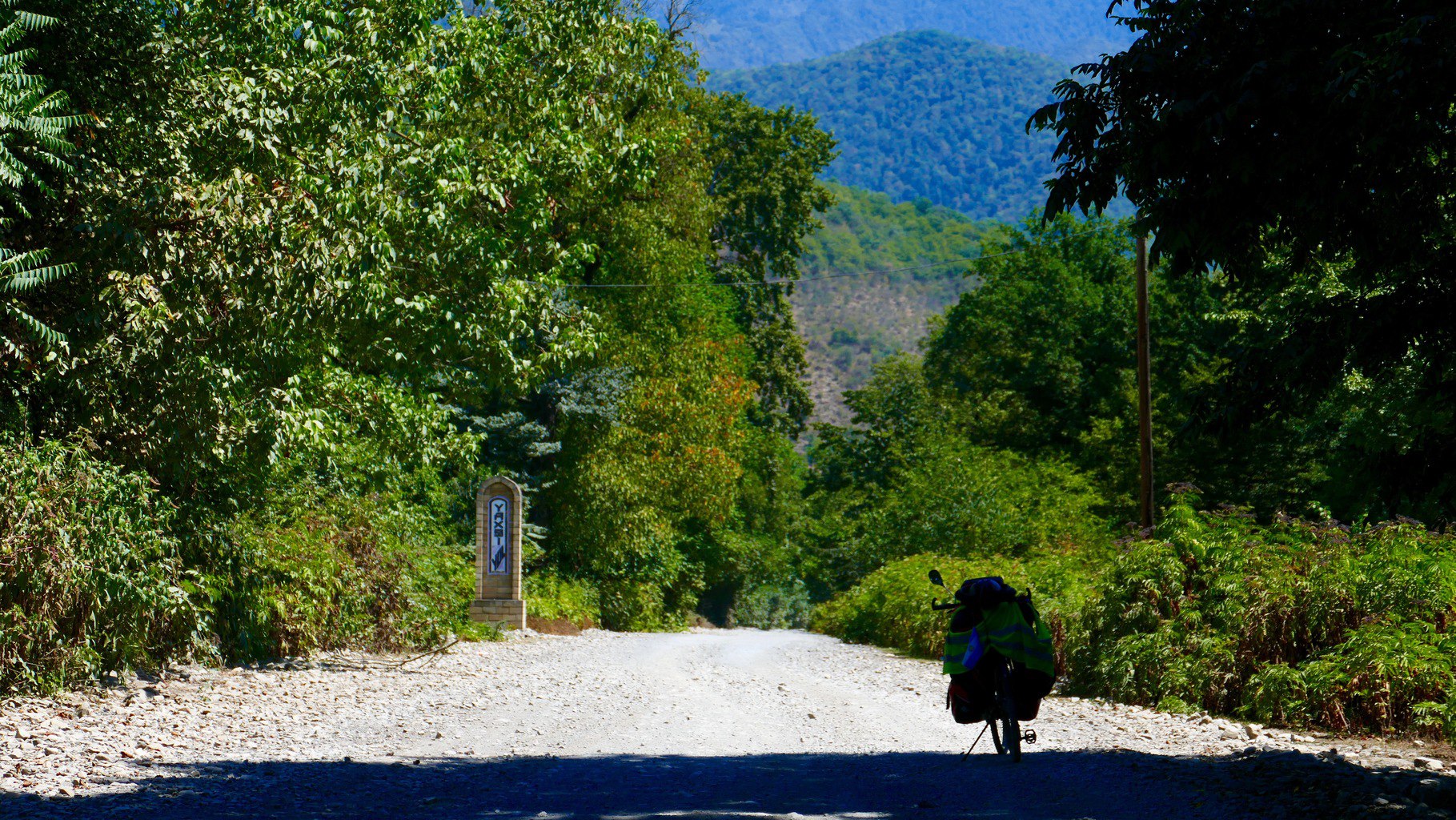 Cruzo el páis en su mayor extensión que es de oeste a este. Siempre costeando el pie del grande Cáucaso. Este me acompaña, a unos kilometros de distancia, siempre a mi izquierda, con diferentes tonos de verde, de ocres y de grises. Detrás de esta cadena montañosa la región Russa de Daguestán. Entre ambas, ocupando la mayor parte de las montañas, una zona restringida y llena de campos minados, herencia de conflictos separatistas de otrora. A mi derecha una meseta esteparia. Sobre mi ruta, a tramos asfaltadue puedo percibir a travez de altas murallas que separan los terrenos de las calles. Sin saberlo con precisión, estimo que este tipo de muros tienen un origen histórico y tradicional de privacidad, no siendo a raíz de protección por una inseguridad actual.
