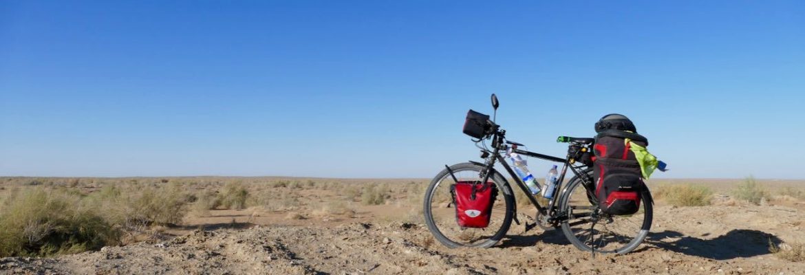 The Kyzyl Kum (Uzbek: Qizilqum, Kazakh: Қызылқұм), also called Qyzylqum, is the 16th largest desert in the world. Its name means Red Sand in Turkic languages. It is located in Central Asia in the doab between the rivers Amu Darya and Syr Darya, and is divided between Kazakhstan, Uzbekistan and (partly) Turkmenistan. It covers about 298,000 km2Es ist kühl am heutigen Morgen als ich die Stadt Khiva verlasse. Die nächsten drei Tage sollen mich, immer entlang der Seidenstrasse, durch die Kyzyl-Kum-Wüste nach Bukhara bringen.